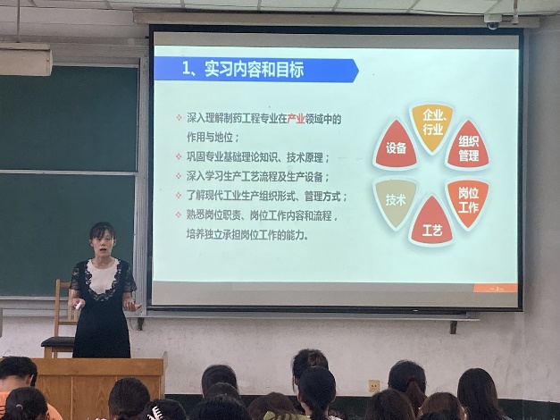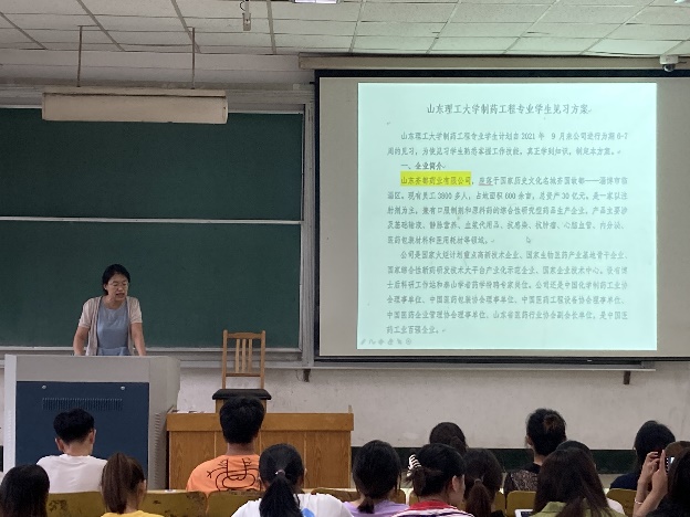 本次毕业实习初步拟定了山东金城医药股份有限公司、山东圣健生物科技有限公司、山东齐都药业有限公司、荣昌制药(淄博)有限公司和山东科伦药业有限公司等五家企业作为实习基地,依托淄博制药企业的地域优势,努力构建校企合作平台,为同学们在实习实践、就业等方面打下良好基础。会后赵倩针对同学提出的问题一一作出解答。本次动员会议提高了同学们的实习热情,增强同学们的实习信心,为下学期毕业实习工作的顺利实施打下了良好基础。