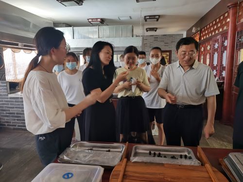 在总经理助理高春蕊带领及解说下,公司师生对广育堂的历史沿革、二仙膏等名药由来、选用药材种类等进行了了解,并参观了古法炮制工艺展厅,观摩了古时中药炮制所用器具,现场品尝了中药炮制传承示范工坊提供的山楂丸、黄精芝麻丸等药膳,进一步感受广育堂中药制剂的非遗传承。参观期间,师生一行还通过广育堂大药房的中医药师的介绍,从阴阳五行、子午流注学说了解了中医药的药理知识。