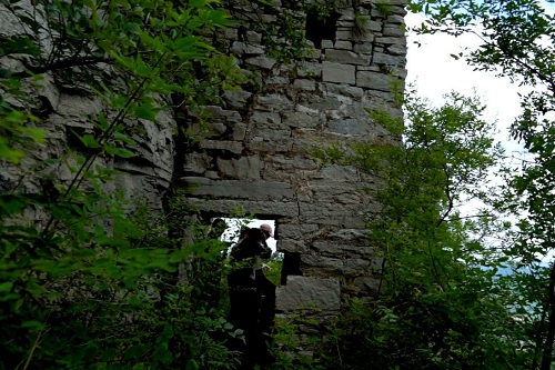 随后,成员们在刘国峰的带领下,前往大山深处,探寻抗日战争所存留的历史遗址。在登顶的路上,刘国峰老师向成员们介绍了沿途的植物,并用相机记录下了成员们爬山的过程。成员们从山顶望去,下小峰村尽收眼底,伴随着清凉的山风,成员们不禁感叹“会当临绝顶,一览众山小。”