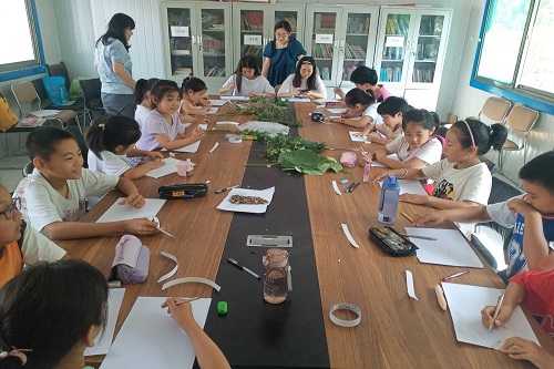 在支教过程中,“落叶粘板”活动是成员们最为印象深刻的事情。成员们就地取材,上山采摘各种植物枝叶并到镇上买来所需的绘画工具,耐心指导孩子们进行创作,一条条河、一棵棵树、一位位卡通人物不一会儿便跃然纸上。孩子们用形态各异的树叶、花瓣、枝杈等材料将画面进行装饰,构成一幅幅创意满满、天马行空的图画。