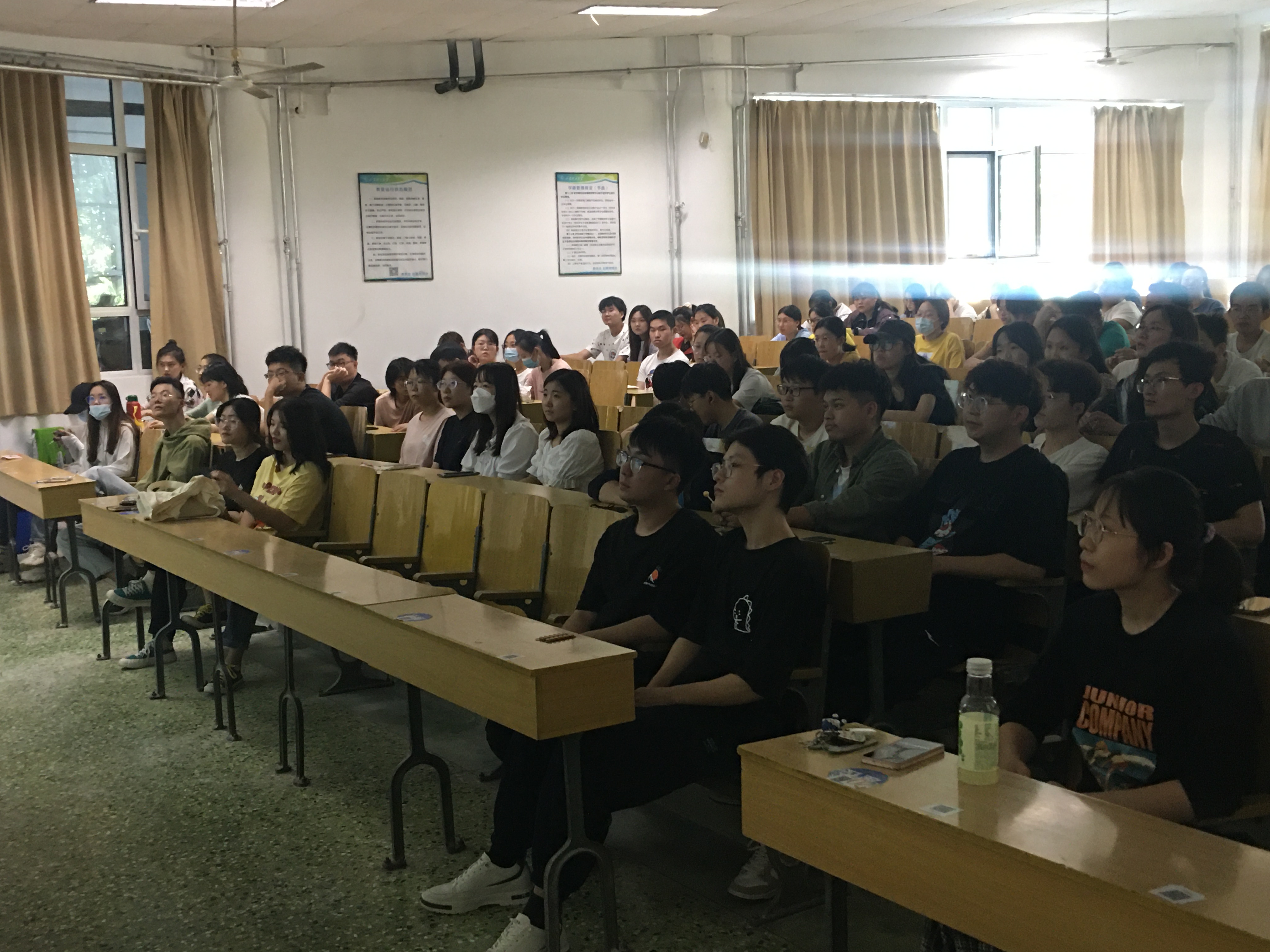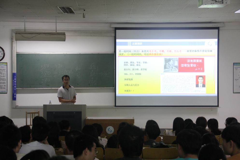 翟静涛在主持时简要介绍了本次会议召开的目的,并向大家介绍了主讲嘉宾。随后,邓洪宽从高考与研究生报考录取的区别入手,引导大家加强对考研基本常识的认识,运用大量案例生动介绍了考研对本科生未来发展的意义,阐述了研究生报考流程等事宜,并结合个人求学发展历程和近几年毕业生考研情况,向大家分享了研究生备考的策略,提出了3点希望要求。一是要注意时间。关注核实好研究生报考流程中各项事宜的准确时间节点,按时完成各项要求。二是要注意调研。充分发挥公司教师、考研上岸的学长学姐等现有资源,切实围绕“考不考、考哪儿、考谁、怎么考”等问题,提前做好研究生报考意向院校、研究方向和导师遴选的调研工作。三是要注意信心。要增强个人信心,调整好生活作息,跟进好心理调整和营养补充。