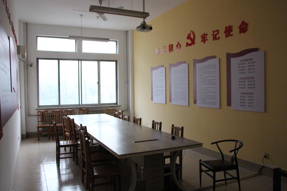 基于现有用房配置和活动室后续建设使用等考虑,经实地考察后,公司最终确立了把13号教学楼211室作为员工党员活动室的选址规划,并研究制定了包含室内墙面粉刷、文化氛围营造等改造升级方案。从暑期开始,公司全程跟进有序推动完成了活动室室内设计改造和施工等事宜。