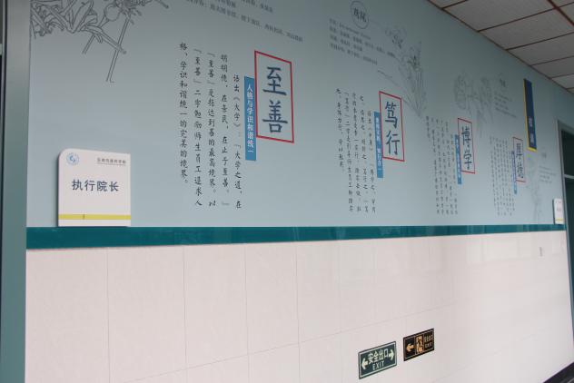 为解决公司教学、办公、实验等公共区域内原有设施破损严重,展陈内容陈旧等一系列师生关心关切的问题,自今年7月份起,公司正式把创建环境文化建设列为公司层面“我为师生办实事”项目,由党总支书记亲自牵头,统筹谋划,逐步推进完成了对公司教学楼内公共区域墙壁的清理粉刷、特色主题文化设计及氛围营造工作。展陈内容涵盖了社会主义核心价值观、校训、校风、教风、学风、人才培养目标定位等多层次教育内容,进一步浓厚了制度、文化育人氛围。