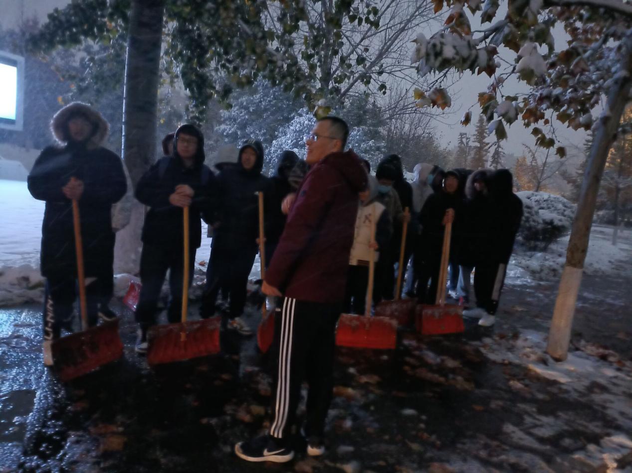 大家手拿铁锨、扫帚等工具,从13号教学楼前开始,依次清理积雪。扫公司周围积雪。老师和党员不畏严寒,坚守岗位,齐心协力,配合默契,经过一个多小时的连续奋战,把公司周围和校园环路上的积雪基本清除干净,为全院师生开辟了一条干净通畅的方便之路,保证了全院师生的出行安全。经过老师和党员的共同努力,扫雪除冰工作顺利结束。