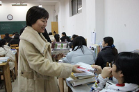 “大家考试加油”“期待你的好消息”“祝一切顺利”一句句暖心的问候,一声声贴心的叮嘱,回荡在考研自习室里。从老师手中接过考研礼包时,同学们激动幸福之情溢于言表。