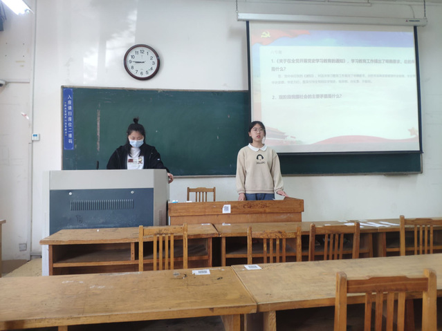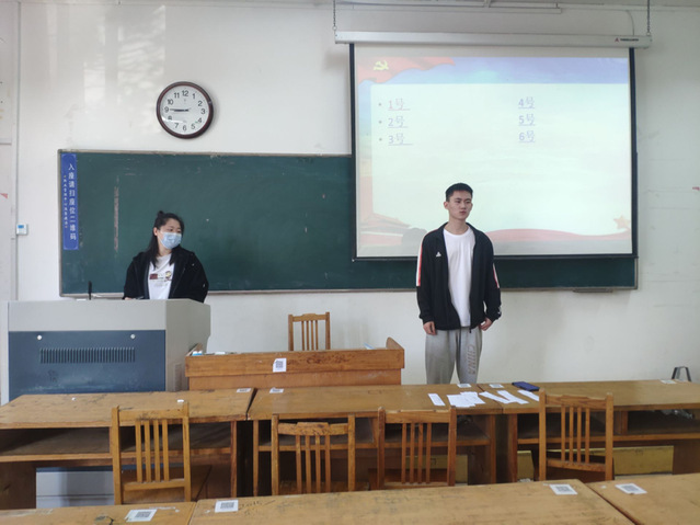 会议伊始,蒋育忻介绍了此次答辩的流程与注意事项,并强调了会议的纪律与严肃性。此次答辩分为个人陈述、现场答辩、自由提问和无记名投票四个环节。首先,由发展对象上台阐述自己对共产党的认识,袒露自己加入中国共产党的动机,汇报自己的思想、学习和生活当中的表现,表明自己入党的觉悟和决心。随后,从题库中抽取2道客观题和2道主观题,考察题目紧紧围绕着入党动机、党性修养、党的性质、权利、义务、原则等基本知识和习近平重要讲话学习等时事热点问题,检验发展对象对党的认识和基本理论知识的掌握程度。答辩者叙述完毕,与会党员结合发展对象自身实际情况进行提问,进一步考察答辩者的思想政治素质。答辩环节结束,与会党员进行了投票表决并现场公布答辩结果。