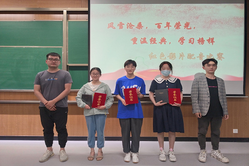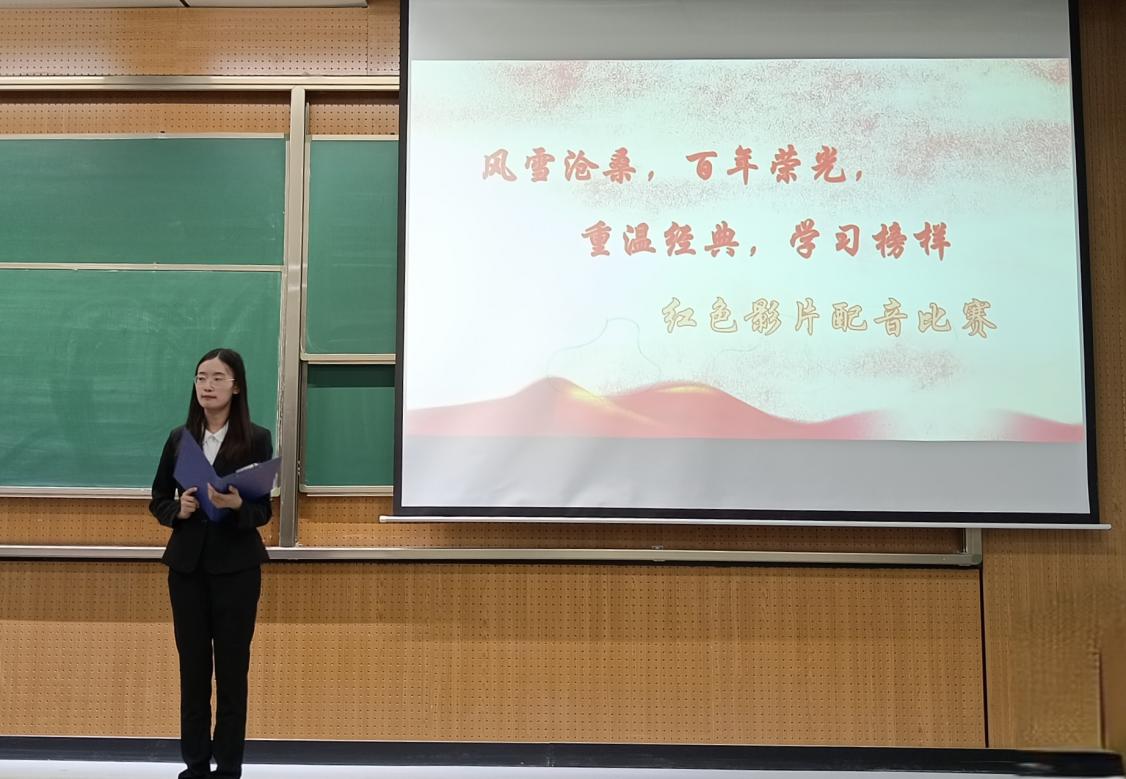 参赛选手按照抽签顺序依次上台对红色经典影视片段进行配音。他们以新颖的形式、铿锵的声音倾吐了心中的热血与赤诚,也将现场观众的热情推向高潮。全身心投入的嗓音赢得了台下观众的阵阵掌声。他们倾情于电影本身,通过配音追忆百年峥嵘,表达对祖国母亲无以言表的感激,倾吐国人心中那小小的梦想。百年岁月留声,红色光影传情,同学们在这里重温峥嵘岁月,追溯发展历程,加强党史学习教育,赓续共产党人的精神血脉。