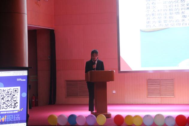 在一段优美的音乐过后,主持人吴一斌、高心雨向同学们介绍出席本次活动的领导老师并致以热烈的欢迎,就活动的举办背景、筹备过程、赛事流程进行简单介绍。