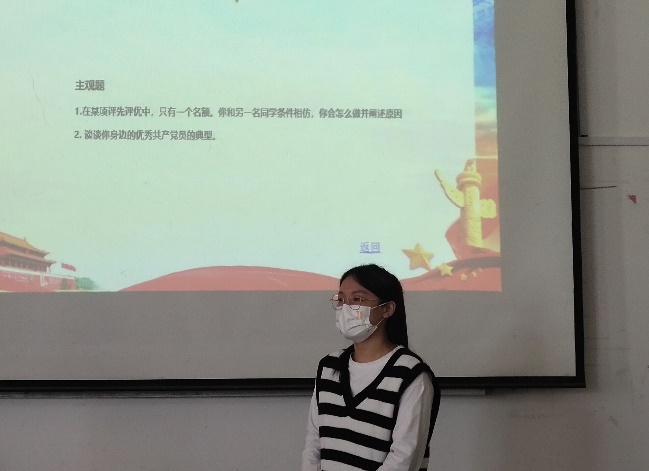 会前,翟静涛简要介绍了本次会议的召开目的以及会议内容,对答辩流程及注意事项作了说明。随后,各发展对象按照抽签顺序,分别介绍个人基本情况、对党的认识和入党动机,通过抽题问答的形式来检验对党的基本理论知识的学习成效,并现场接受与会党员的提问。本次答辩共设有客观题、主观题和自由问答题,内容涵盖《中国共产党章程》、党的十九大等基础知识和时事热点问题。