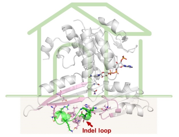 D-氨基酸广泛应用于食品、医药、化妆品等领域,但其在自然界中存在较少。内消旋二氨基庚二酸脱氢酶(meso-DAPDH)因其能一步催化酮酸合成D-氨基酸而受到广泛关注。前期作者对该酶进行系统发育进化分析和底物谱分析发现该酶家族存在趋异进化,两个亚型在不对称还原氨化2-酮酸生成D-氨基酸上呈现明显的差异。在对两个亚型进行氨基酸序列分析时发现,两者之间存在明显的缺失/插入序列,其中最长的一段缺失/插入序列包含16个氨基酸,以loop的形式存在于亚类I中,目前该结构的功能尚未被报道。本研究中,作者以亚类I的代表酶种CgDAPDH和亚类II的代表酶种StDAPDH为研究对象,将这段插入/缺失序列命名为indel-loop,通过缺失、插入、丙氨酸突变等方法构建了一系列突变体,探究其在Cg-DAPDH催化及酶家族趋异进化中的作用,并利用分子动力学模拟等生物信息学分析技术,解析了其作用机制。本工作发现了该段indel loop在维持CgDAPDH关键催化残基的正确构象以及蛋白整体氢键网络等方面的“地基”作用,此外,该段indel loop影响不同催化方向的产物释放。该研究为高效合成D-氨基酸提供了重要的理论支持,在理论研究和实际应用方面均具有重要参考价值。