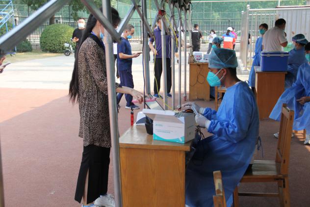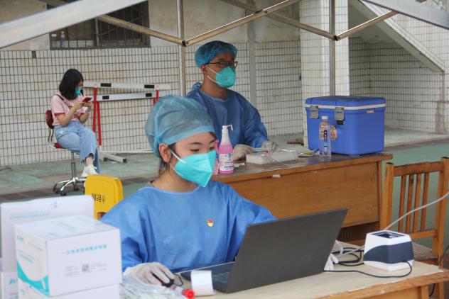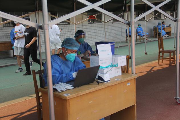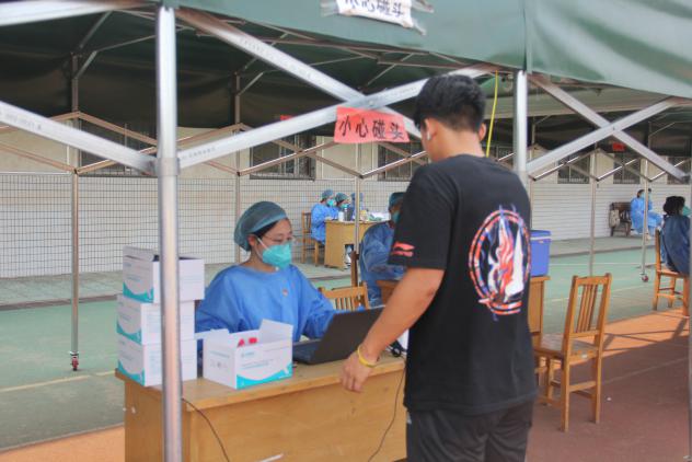 6月11日下午,betway西汉姆联本科生党支部在第二体育场开展主题党日活动,毕业生党员化身核酸抽检志愿者,在离校前夕,以志愿服务向母校告别致敬。本科生第二党支部书记翟静涛、第一党支部宣传委员陈颖洁以及本科生员工党支部部分毕业生党员参加活动。