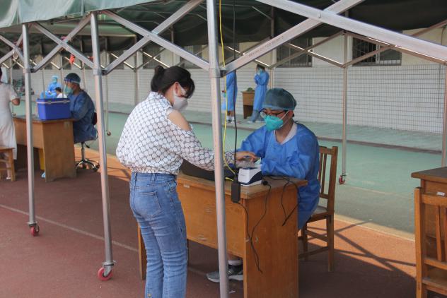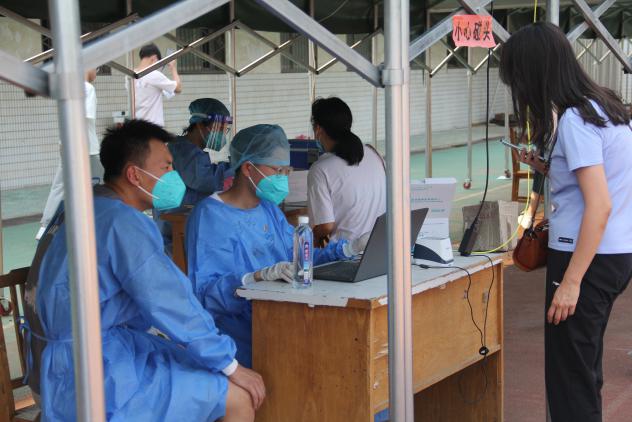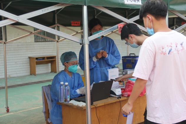 6月11日下午,betway西汉姆联本科生党支部在第二体育场开展主题党日活动,毕业生党员化身核酸抽检志愿者,在离校前夕,以志愿服务向母校告别致敬。本科生第二党支部书记翟静涛、第一党支部宣传委员陈颖洁以及本科生员工党支部部分毕业生党员参加活动。