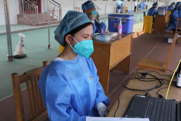 下午15时许,毕业生党员在第二体育场集合完毕,大家认真穿好防护衣物,并在现场工作人员的示范下,进一步熟悉了信息录入有关操作流程和规范。随后依照工作分工,投入到了紧张的信息录入工作之中。