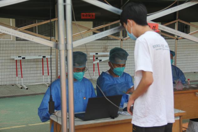 “大家排好队,请提前调出二维码”“请您扫码”。烈日炎炎,气温一度上升到38摄氏度,但这丝毫并未削减党员同志志愿服务的热情与成效。匆忙的身影里,一枚枚亮眼的党徽,犹如一面面鲜红的旗帜,在核酸抽检的工作队伍中格外显眼。全体党员同志以高度负责的态度和一丝不苟的工作作风践行了全心全意为师生服务的宗旨与承诺,赢得了广大师生的一致好评。