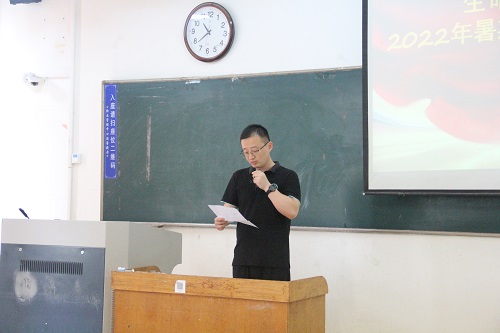 “七月蜜‘峰’”实践团团长刘宗帅作为学子代表发言,向各位领导老师的关心指导致谢,并承诺团结协作、全力以赴,圆满完成预定的各项实践任务。