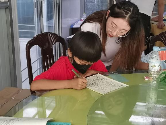 紧接着,队员们开始展开春晖课堂的一系列安排。七月蜜“峰”实践团各成员向同学们做了简单的自我介绍,便开始了一天的互动教学。根据年级差异,小朋友们被分成两批,为了更好的服务小朋友,实践团成员与小朋友们进行单独谈话,了解他们在学习上有哪些困难、除了学习还想掌握什么新技能、希望从学堂里学到什么。在学习上,不同小朋友展现了不同的学习能力,对学习接受较慢的小朋友,老师耐心的为她讲解。对于他们存在的困难,老师因材施教,为他们提供不同的解决方案。