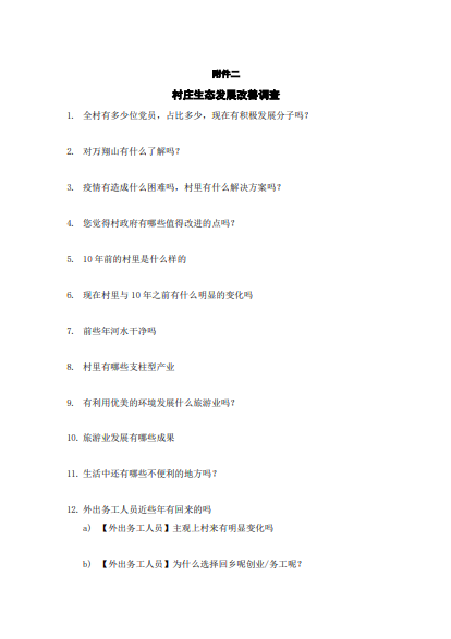 7月4日,团队成员到达分水新村,从村支书杨书记及村民的口中,实践团了解到,村中60岁以上村民占大多数,村中大部分年轻人选择了外出务工且大部分已经选择在务工所在地定居。目前村中大部分为60岁以上的老人。实践团根据村中的情况及相关政策,编写了一份针对性较强,覆盖面较广的调研问卷。
