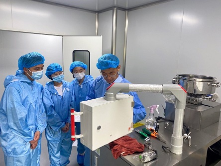 首先,博仲医药科技有限公司的生产人员带领团队成员来到生产车间,并依次介绍进入生产车间的流程。在生产人员的介绍下,团队成员了解到杜仲籽油软胶囊生产环境要求严格,公司在“求质”的基础上追求产品高品质、企业高质量发展,为百姓制作高品质放心药品。