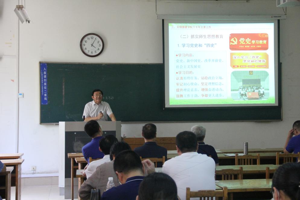 党总支书记郭万保从全面加强党的建设、抓实师生思想教育、强化重点工作落实、确保公司安全稳定等4个方面对公司下半年党建思政和公司整体工作做了安排部署。要求全体教工要继续发扬公司工作中形成的“推车精神”、“熬夜精神”和“专业认证精神”,以更大的决心、信心推动公司各项工作取得新突破,为特色强院建设再立新功,以优异成绩迎接党的二十大胜利召开。他还代表公司就即将到来的第38个教师节,向全体老师送上节日祝福。