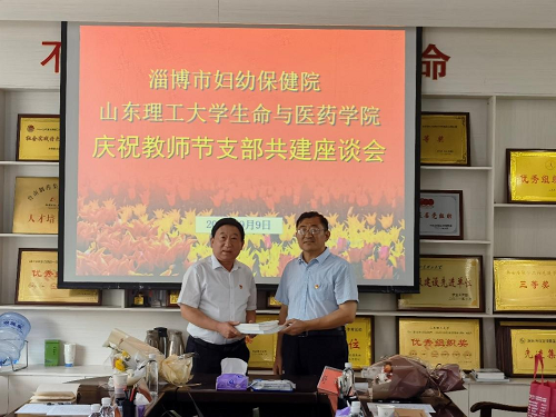 2022年9月9日,淄博市妇幼保健公司党委副书记王忠德、门诊医技二支部书记牟凯等一行5人来公司考察交流,双方在公司会议室举行庆祝教师节支部共建座谈会。公司党总支书记郭万保、副经理巴连良、制药工程系主任赵倩、制药工程系党支部书记曹忠红等领导老师参加座谈,会议由巴连良主持。