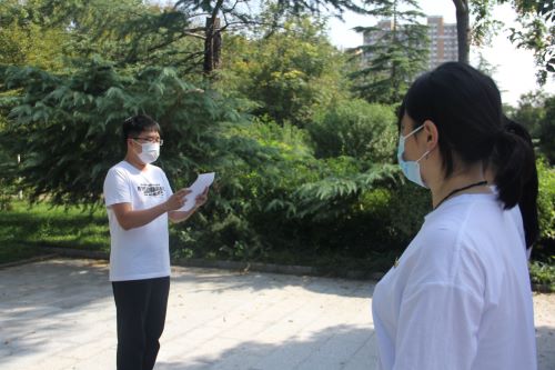 接着,第二届冯思广班班长、支部党员赵智航致追悼词。1931年9月18日,九一八事件爆发,开始了长达14年的抗日战争。赵智航讲到“九一八”,是国耻日,更是中华民族觉醒日,面对残暴的侵略者,英勇顽强的中华儿女没有低头,杨靖宇、赵尚志、赵一曼……无数革命先烈宁可粉身碎骨也不屈服,是他们用自己的身躯换来了中国繁荣的今天,是他们用自己的生命,筑起了中华民族不倒的长城。革命先烈,无名英雄,浩气长存,英魂不灭,人民英雄永垂不朽!