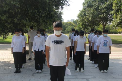 接着,第二届冯思广班班长、支部党员赵智航致追悼词。1931918日,九一八事件爆发,开始了长达14年的抗日战争。赵智航讲到“九一八”,是国耻日,更是中华民族觉醒日,面对残暴的侵略者,英勇顽强的中华儿女没有低头,杨靖宇、赵尚志、赵一曼……无数革命先烈宁可粉身碎骨也不屈服,是他们用自己的身躯换来了中国繁荣的今天,是他们用自己的生命,筑起了中华民族不倒的长城。革命先烈,无名英雄,浩气长存,英魂不灭,人民英雄永垂不朽!