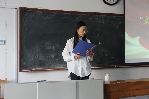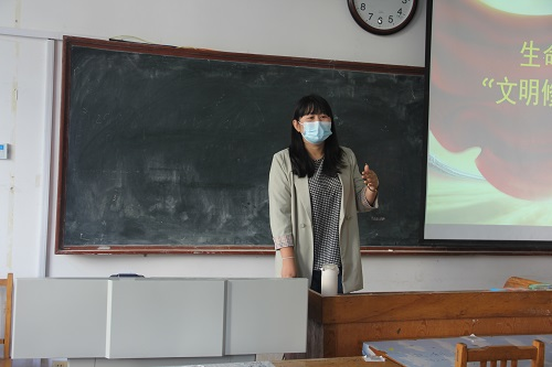 蒋育忻作总结讲话。她简要阐述了活动的目的和意义,并对全体同学提出三点希望与要求,一是思想上足够重视,深刻认识文明修身对于班级发展和个人成长的重要意义;二是组织上要有力气,各班班委要增强责任意识,起到带头作用,将活动方案完整传达给班级全体同学;三是行动上要有落实,积极组织班级同学参与活动,确保活动实效。