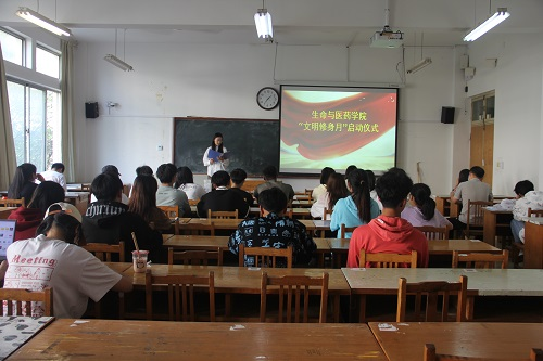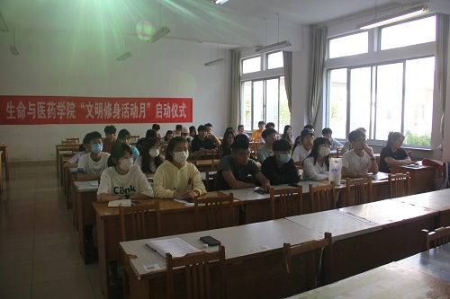 仪式开始前,全体成员观看了《文明修身活动建设月》的相关视频材料,初步了解了随处可见的校园不文明现象,感悟文明修身的重要意义。