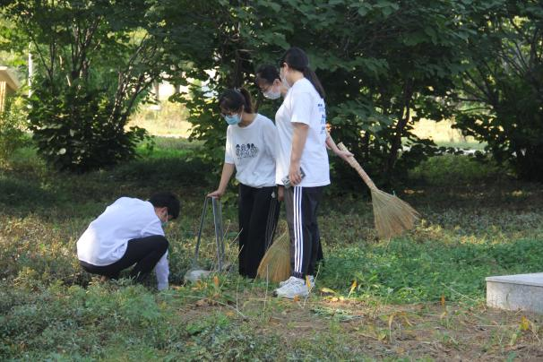 最后,全体党员开展志愿服务活动——打扫国防教育主题园。