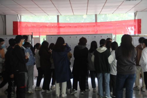 活动伊始,申报“新生宿舍学长”的入党积极分子将申请表统一张贴在北大厅展板上。2022级全体宿舍长在仔细了解申报人情况后,通过粘贴写有本宿舍号的便签确定意向人选。