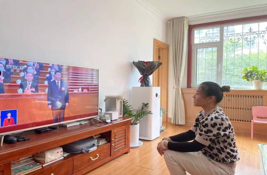 教师居家观看党的二十大开幕会直播