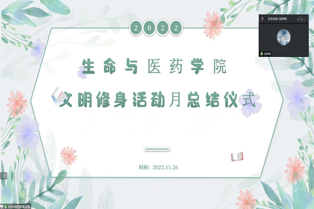 随后,刘宗帅宣布了文明修身进宿舍、文明修身进课堂和文明修身进校园获奖班级。文明修身进宿舍获奖班级是生科2102班、生科2001班。文明修身进课堂获奖班级是生科2202班、制药2204班。文明修身进校园获奖班级是生科2102班、生工2202班。