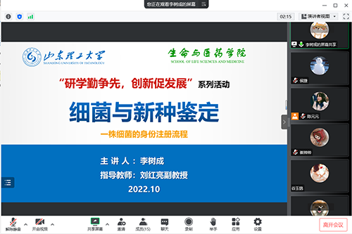 本次学习活动作为研究生支部开展的“研学勤争先,创新促发展”系列活动之一,旨在加强研究生学术领域交流,由2020级研究生李树成为与会研究生进行“细菌与新种鉴定”专题交流。