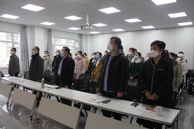 会议伊始,全体起立,奏唱国歌。