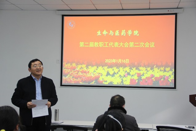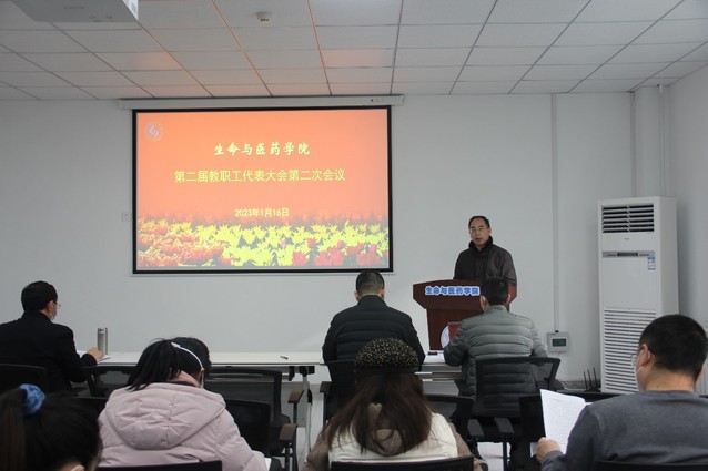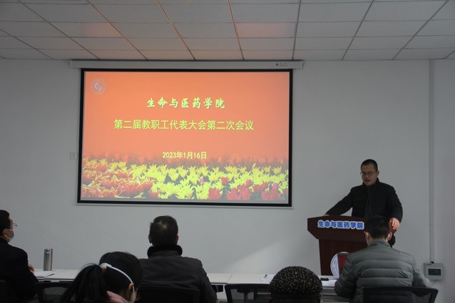 副经理巴连良作题为《奋力推进团队建设新突破,全面开创特色强院建设新局面》工作报告,从团队建设、人才队伍建设、人才培养、科学研究和服务社会、员工教育管理、党建和思想政治工作等6个方面,回顾了公司2022年的工作成绩,指出了存在的差距与不足,并从博士点申报、团队队伍建设、人才培养、科研和社会服务、员工工作、党建引领等6个方面对2023年工作做出部署。他指出,站在2023年新起点,面对公司发展新目标,全体教职工要在公司党委、校行政正确领导下,团结一心,勇毅前行,开拓进取,攻坚克难,力争成功获批生物学一级学科博士点,奋力推进团队建设新突破,全面开创特色强院建设新局面。
