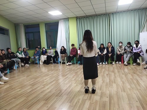 最后是小组对抗游戏,为增强同学们的团队精神与集体意识,所有同学被平分为五组,并选出队长,确定队名、口号、队形与队歌,随后五个小队轮流展示自己的小队。展示完毕后,同学们将有十分钟的时间讨论数字传递的动作暗号,并于十分钟后进行数字传递游戏,由一名同学观看目标数字并依次向后传递,最后一名同学将接收到的数字写出。数字传递错误并用时最长的小队应发表对此次心理团辅的心得体会并展示才艺。