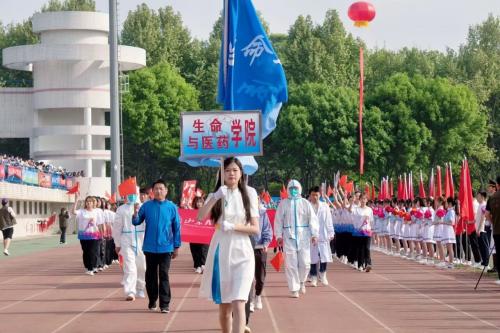 “生命因运动而精彩,我们因生命而辉煌!”4月20日校运会开幕式上,公司代表队在公司党委书记王光坊和党委副书记姜素琼带领下,高喊嘹亮的口号,迈着整齐划一的步伐,走向主席台,以饱满的热情和昂扬的精神面貌接受全校师生的检阅。