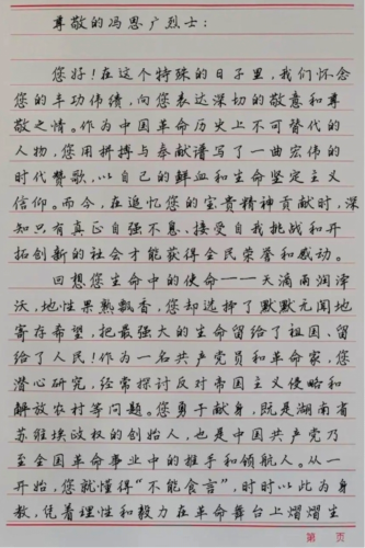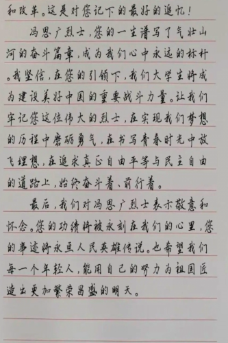 冯思广精神研究会号召同学们用书信的方式向冯思广烈士致敬;组织同学们祭奠烈士,学习革命精神,同学们踊跃提交自己的作品。