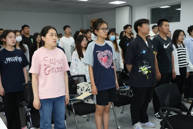 会议伊始,全体成员肃然起立,高唱国歌。