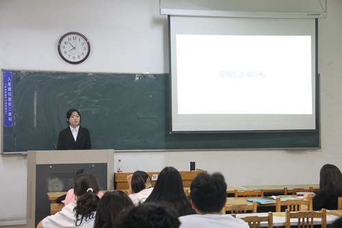 赵萍萍则围绕电信诈骗专题,向大家介绍了校内外典型的电信诈骗手段等,警醒大家要自觉增强安全意识,提高自我保护能力。当下网络时代,信息泄露严重,保护好个人信息的同时也要保护好自身权益。为此她专门就防范电信诈骗维护自身权益的渠道向大家作了普及,介绍了公司安全保卫处当前对此所作的工作及取得成效。