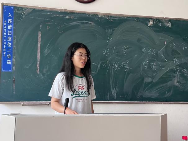 接着,蒋育忻对2019级考研就业情况作了简单分析。她从专业分类、专硕与学硕的区别和考研调剂展开分析,建议同学们谨慎思考、独立选择。