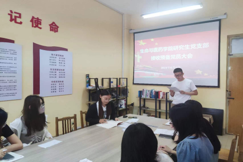 会议伊始,李天琪同志向与会党员介绍本次会议流程,清点、报告应出席党员人数和实际到会人数,并强调会议纪律,以及介绍曹翔雨同志的个人情况。随后,曹翔雨同志开始汇报自己的入党动机、过程、入党态度等情况;入党介绍人进行介绍情况;支部组织委员衣雨潇同志对申请入党人能否入党进行充分讨论、评议,与会正式党员对申请人发表评价,提出优缺点,采取无记名投票方式进行表决。李天琪现场通报投票结果,同意曹翔雨同志为中共预备党员,曹翔雨同志进行表态,表示今后将以优秀党员标准严格要求自己,克服自身缺点和不足,努力向优秀共产党员靠拢。全体党员对新党员鼓掌祝贺。