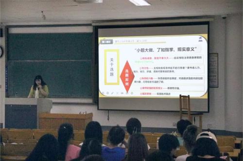 会上,孙秋燕、李凤云首先向同学们介绍参加思想政治理论课社会实践的重要性,号召同学们将社会实践作为提升自己的平台,锻炼毅力、培养品格、增强社会责任感。随后,她们从学思政课实践教学方案简介,暑假之前的准备工作,暑假实践调研中的基本要求,暑假之后的考评、总结,注意事项五个方面向同学们介绍社会实践的相关事宜,并对今年社会实践的具体流程进行了详细介绍。其中,她们就实践材料提交进行了简单介绍,实践材料主要包括实践活动日志、调研报告等,在实践过程中,要尤其注意搜集和保留原始材料,并详细记录社会实践日志,对于实践报告的具体撰写格式及要求,进行了重点讲述。