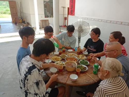 奶奶家是一个传统的农家小院,院子里种满了各种蔬菜和果树。她热情地接待了实践团成员,并说:“不需要拘束,像来自己的家一样”。她为我们准备了丰盛的农家饭菜,让我们品尝到了地道的农村味道。我们围坐在院子里,听老奶奶讲述着这个村庄的历史和传统,她的话语中充满了对过去的怀念与对未来的希望。