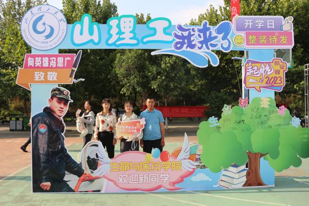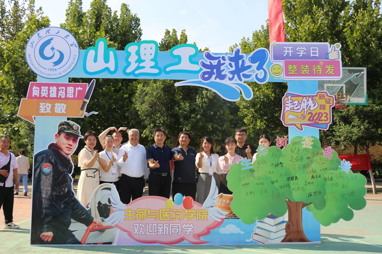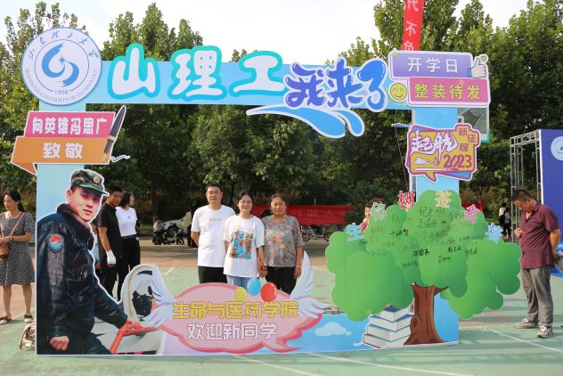 “冯思广烈士是我们生物工程专业毕业的优秀员工”“行李我们帮您拿着,请您跟孩子移步合影墙下,由我给你们拍照留念”“同学,你好!请来‘生命之树’署名处签名,为我们的‘生命之树’再添新叶”。“我与思光有个约”合影墙边,“向英雄冯思广致敬”醒目的标识,吸引了很多新生和家长驻足。在引导员介绍和协助下,大家纷纷来到打卡墙下合影留念,并通过打卡签名的形式向冯思广烈士表达崇敬之情。