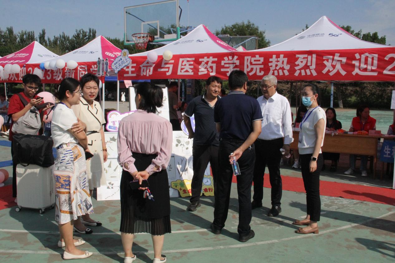 公司党委书记胡兴禹一行和公司领导班子成员,在全体辅导员陪同下来到迎新现场检查指导新生报到工作,亲切慰问现场工作人员。