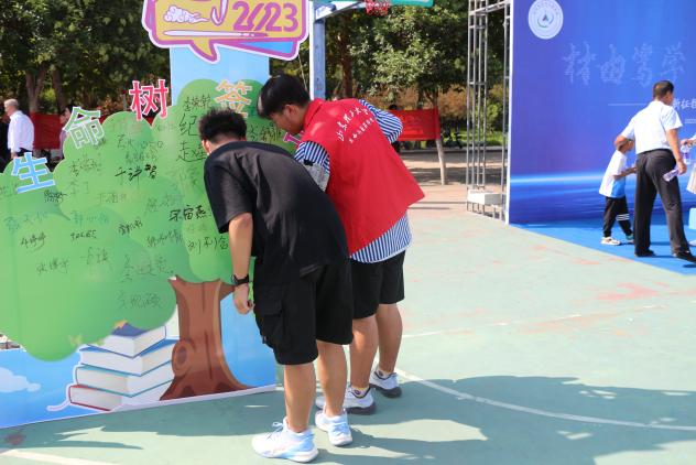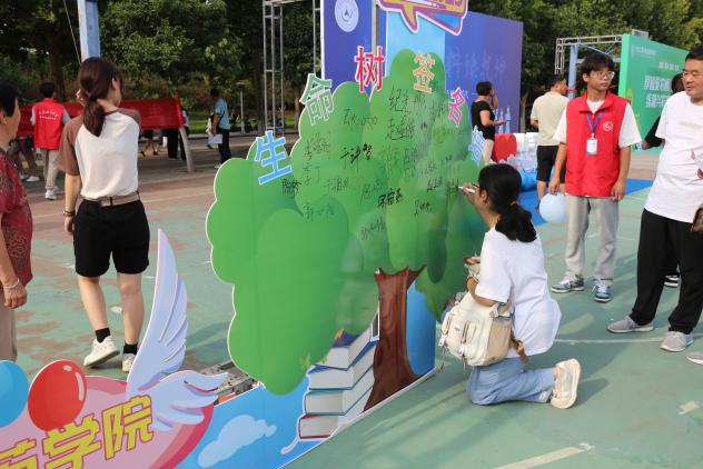 新生在“生命之树”签名墙署名的那一刻,也正式宣告了成为生命大家庭的一员,寓意为“生命之树”茁壮成长再添“新绿”。