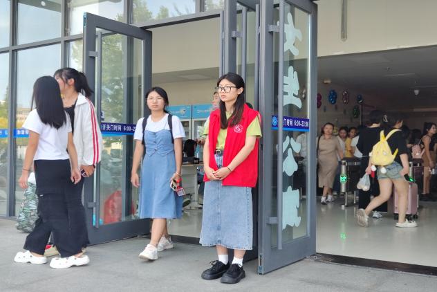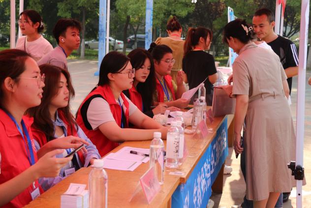 “请出示录取通知书、身份证等材料”“不用着急,天挺热,家长可以来一侧的帐篷稍作休息”。一句句温馨提醒,一声声问候关心,尽显了现场工作人员的满满心意。做好手头的工作,帮助新生顺利完成入校报到手续,既是现场全体工作人员的职责所在,更生动抒发了其对新生入学开启新征程的无言祝福。