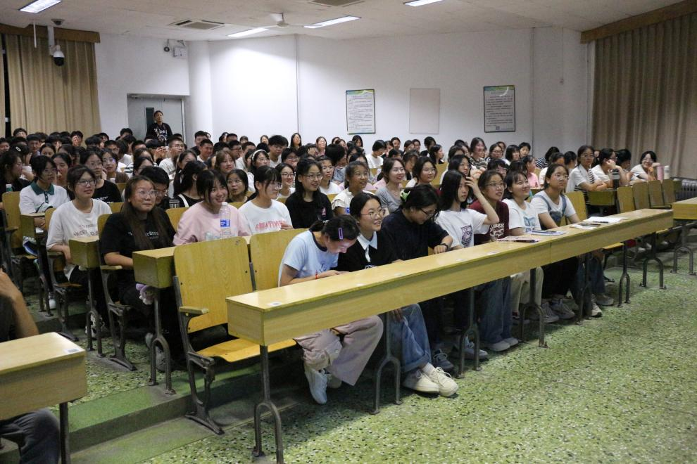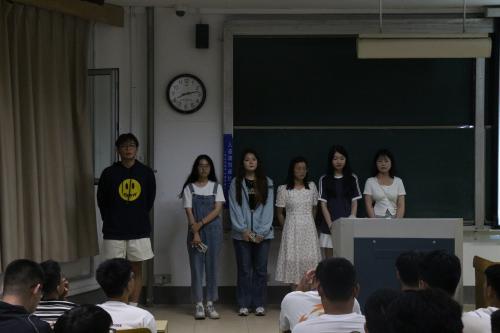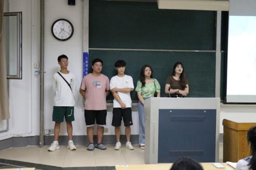 会议伊始,刘丛丛向全体新生的到来表示热烈祝贺与欢迎,并依次介绍2022级带班学长学姐。生物科学、生物科学(师范类)、生物工程、制药工程四个专业带班学长学姐分别上台向新生进行答疑解惑,使新生更加了解老员工活。