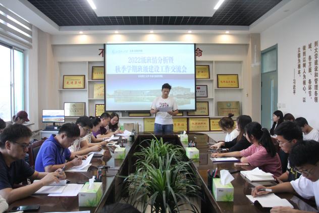9月14日下午,公司在13号教学楼270室召开2022级班情分析暨秋季学期班级建设工作交流会,公司党委副书记姜素琼出席,2022级全体班主任、班长和团支书参加会议。会议由2022级辅导员翟静涛主持。